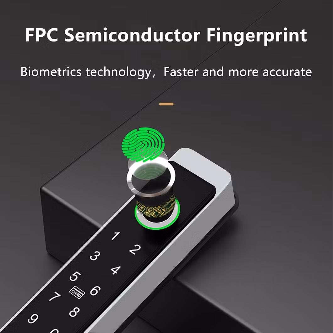 - Desbloqueo de huellas digitales: Esta puerta corredera de bloqueo inteligente equipada con tecnología de reconocimiento biométrico de huellas digitales puede reconocer su huella digital en sólo 0,3 segundos, más rápido y más preciso.